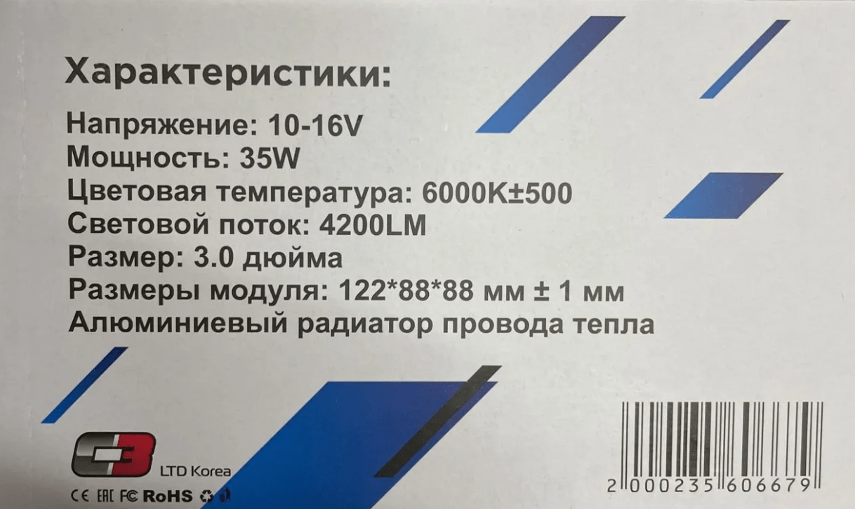 Мощность Ближний свет: 35W